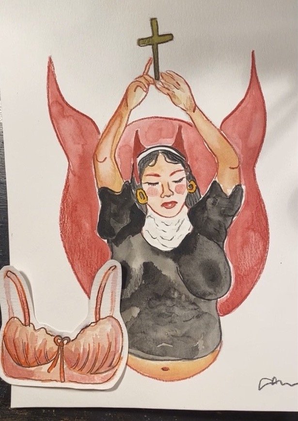 as a self portrait artist myself, I love Sasha Gordon. sheβs a Rhode Island school of design graduate, a dream every artists has when they think of going to university. Iβm mostly inspired by the fact that she makes this type of work. I donβt find myself replicating her work in any way, itβs not the way I my tell story at the moment, but I enjoy absorbing and admiring her level of talent and presence in the fine art realm, specifically in New York City. One day I hope I can be brave enough to crest more personal scenes about my life the way she does. I was so happy to have pulled this prompt as my last painting, bc either way if I would have gotten βevilβ or βartistβ I was gonna paint this beauty of a photo.